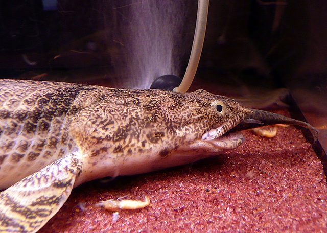 すでに消灯した水槽から、衝撃音が響きました!