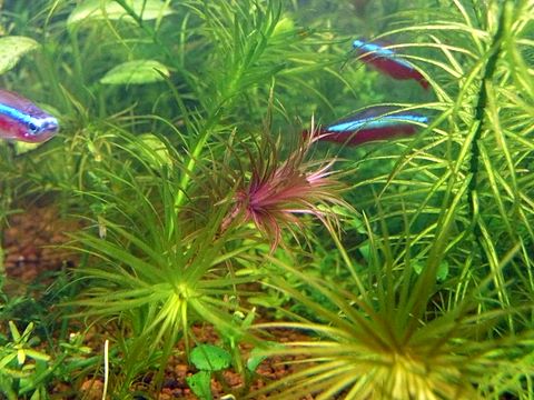 水草水槽内のラガロシフォン コルドファヌスの脇芽が異様に色が濃いようです。