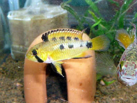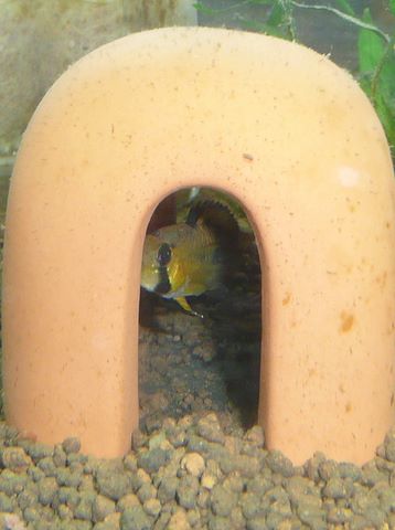 今日水槽を覗いてみたら、メスの黄色が薄くなってました。