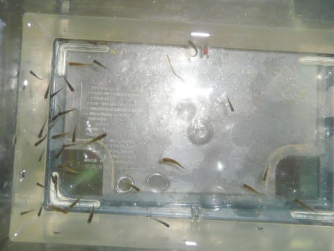 その際、いつもの撮影用の容器に複数匹の稚魚を入れて撮影してみました。