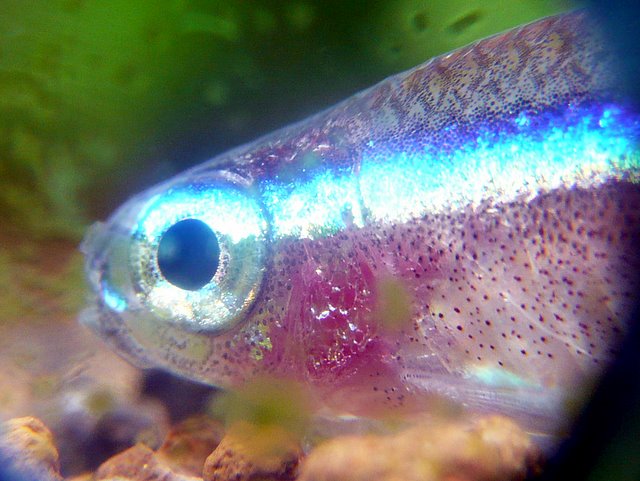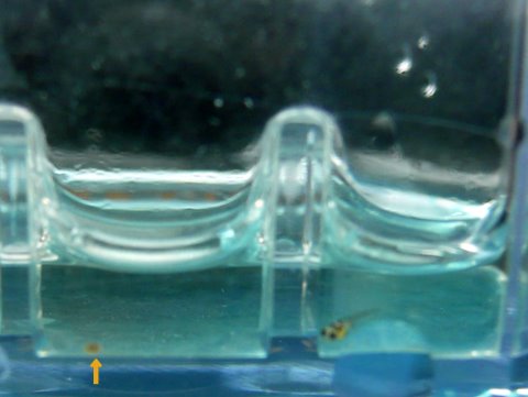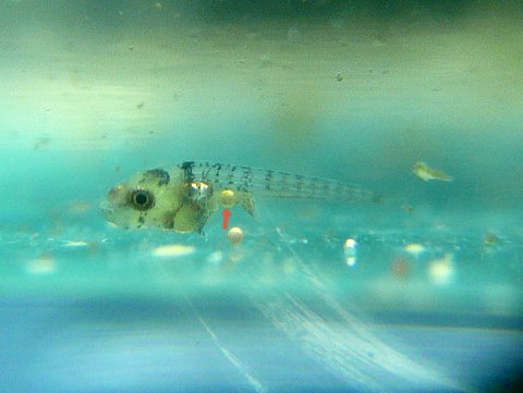 稚魚の餌の食べ方の影響で、ブラインの殻が、結構腹に詰まっています^^;