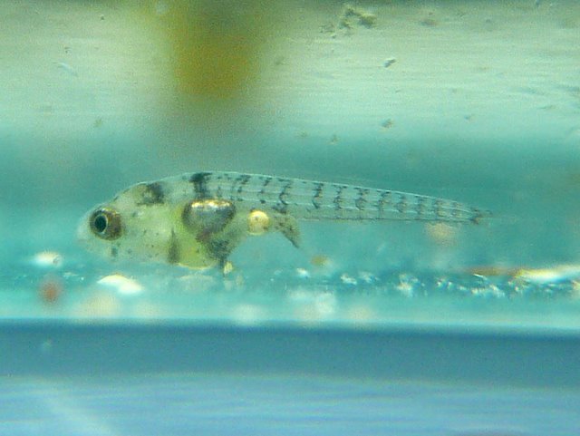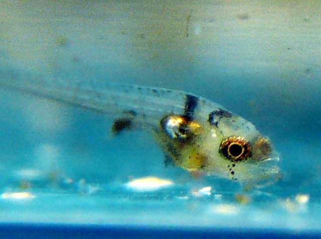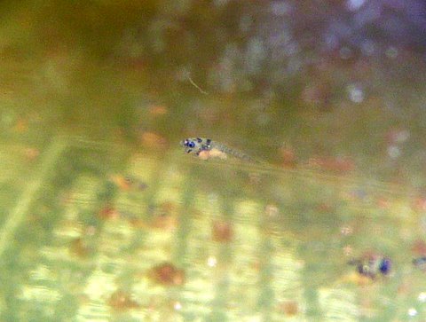 実は比較画像で撮影したチビは孵化直後の仔魚で、