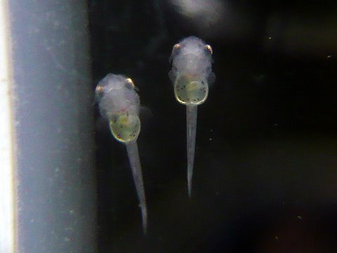 ヨークサックが吸収され始めると稚魚の動きも活発になります。