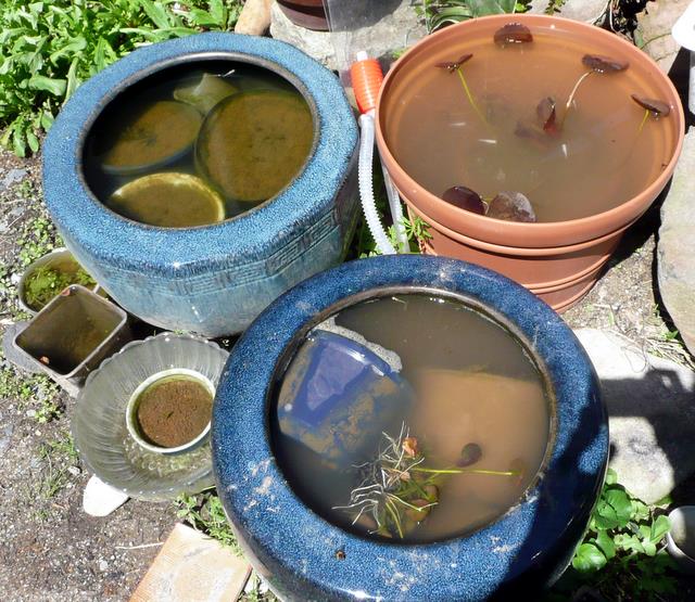 ・・・案の定睡蓮鉢が水の中でひっくり返されていました。