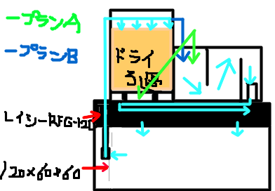 またドライともう一つを直接繋げるのがいいのか、それぞれ独立させて、別々にRFGまで水が落ちるようにするかも悩んでいます。