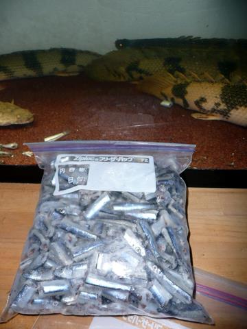 約1ヶ月と1週間で1.2~1.3kg程度。このキビナゴは送料合わせても1kg1000円相当なので、概算で1ヶ月1000程度で済むというリーズナブルなエサとなっています!!