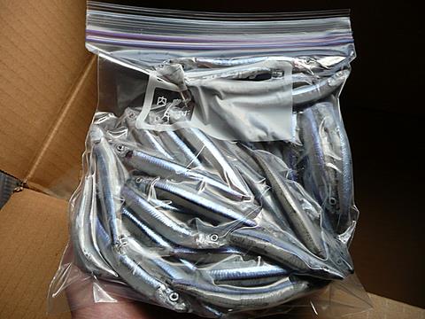 冷凍の状態(水分はしっかりと除かれていました♪)のお陰で表面の氷が気持ち溶けかけた時点でバラバラに出来たので、1尾ずつバラして保管したものもあります。