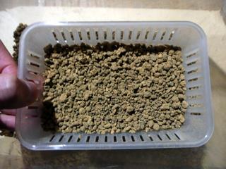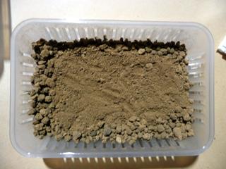 用意したのは野菜用?の網状のものとの2層式タッパー(100均)と赤玉土。