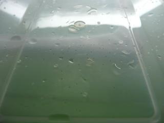 今の時期適水温なのは水槽の水ぐらいしかないので、水草水槽に浮かべます。