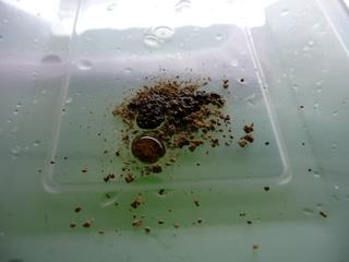見難いですが、真ん中周辺にある黒い点が種です!!20粒ぐらいですかね?