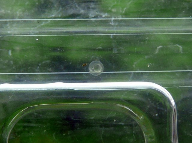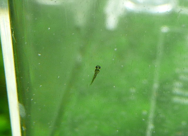 孵化直後から自由遊泳するまでは、水槽の底や側面についてじっとしています(もちろん泳げます)。