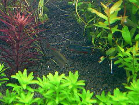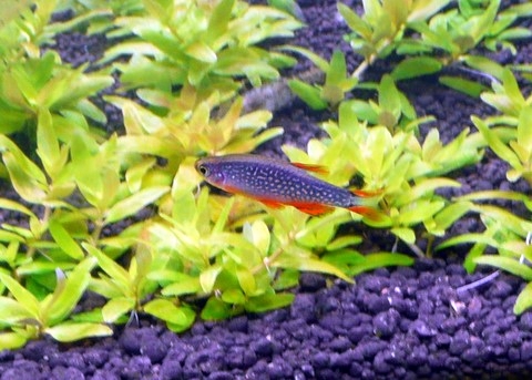 ♂は綺麗です(ソイルや水草は青味がかっていますが、ハナビは画像よりも濃いです)し、