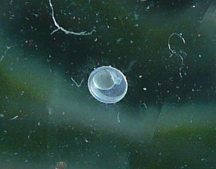 ハナビの稚魚は2尾が自由遊泳しています。1尾☆もう1尾もどうかな?というところです。底でじっとしていますが、ヨークサックが残っているように見えますが小さすぎるので解りません。